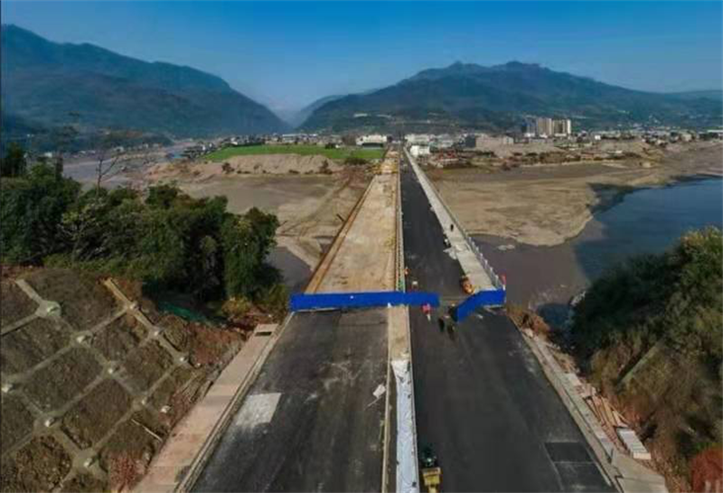 12月24日,雅安多营青衣江大桥已贯通的半幅桥面和两端引道已完成路面铺设和护栏安装,另半幅桥面完成浇筑,开始桥面铺设,大桥即将