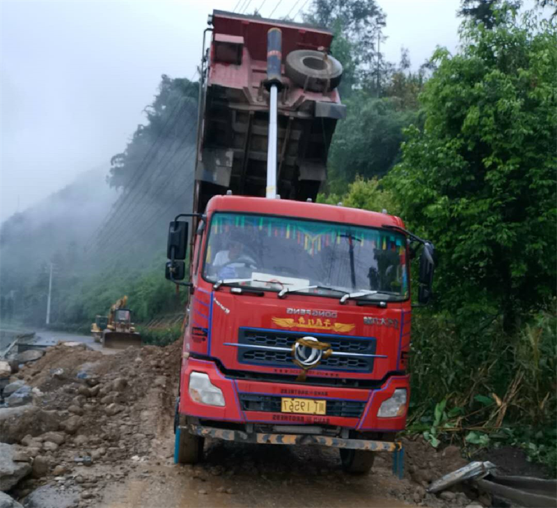 8月16日,受强降雨影响,国道351线宝兴段3037公里+600米处(小地名:剑锋电子厂)路基悬空,路面塌陷,道路中断,情况十分紧急。 兴宝公司接到宝兴县政府抢险指令后,立即启动应急预案,执行董事彭清翔第一时间赶赴现场,迅速组织12人的抢险突击队,携带挖掘机4台、重型运输卡车6台,连夜对受损路段进行抢险施工,运输投放巨石52车、连砂石13车,共计2700余吨。经过近10小时的陆续在奋战,成功排除险情。