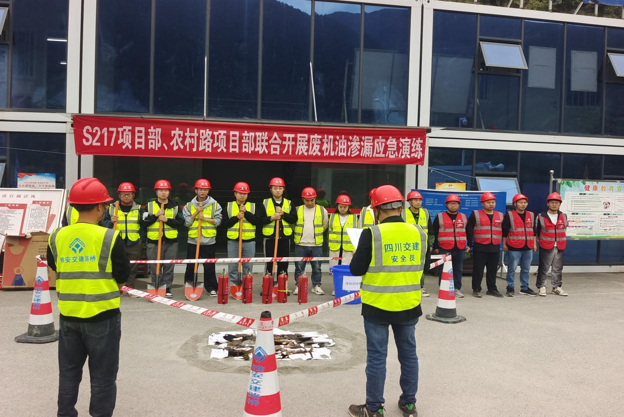 为提高项目管理人员与劳务人员应对废机油渗漏突发事件的能力,10月25日,w66利来国际集团路桥公司S217石棉县王岗坪至石棉县城段灾后恢复重建工程项目部、“9.5”泸定地震石棉县受损农村公路灾后恢复重建工程项目部、石棉县农村公路改造提升工程项目部,联合召开环保废机油处置应急演练。