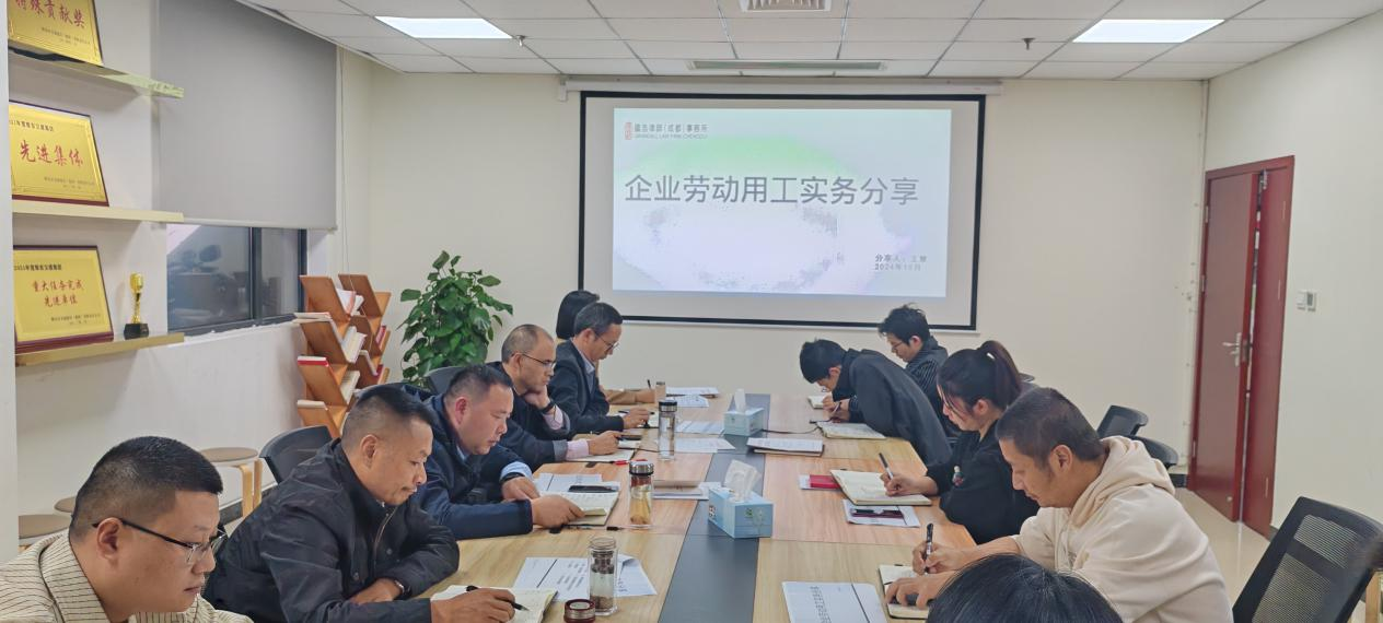 为进一步加强劳动用工实务操作,提高解决劳动争议的能力和技巧,10月31日,项管公司邀请成都国浩律师事务所王慧律师召开了劳动用工实务培训活动,公司领导班子、中层及相关经办人员约20人参加培训。