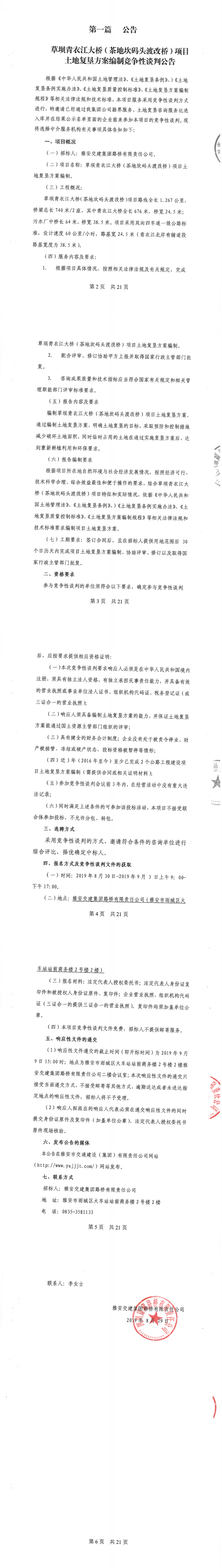 w66利来国际集团路桥有限责任公司草坝青衣江大桥(茶地坎码头渡改桥)土地复垦方案编制竞争性谈判公告