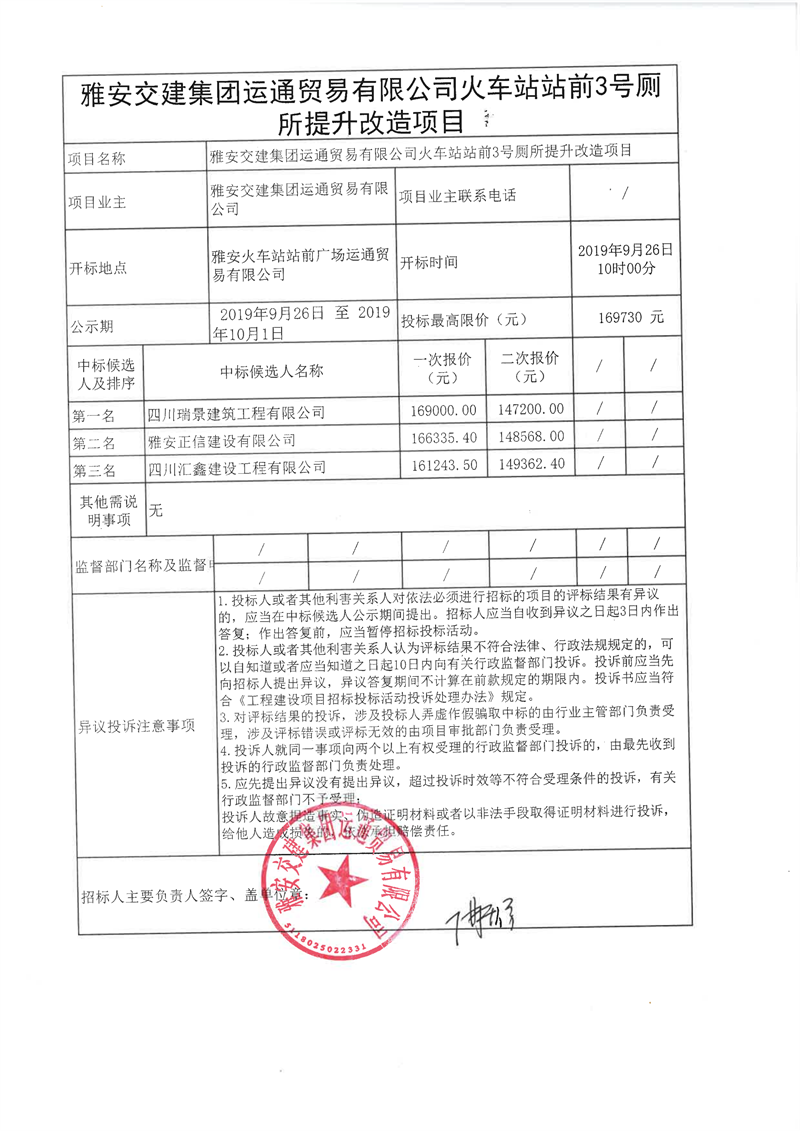 w66利来国际集团运通贸易有限公司火车站站前广场3号厕所改造提升项目(第二次)竞争性谈判结果公示