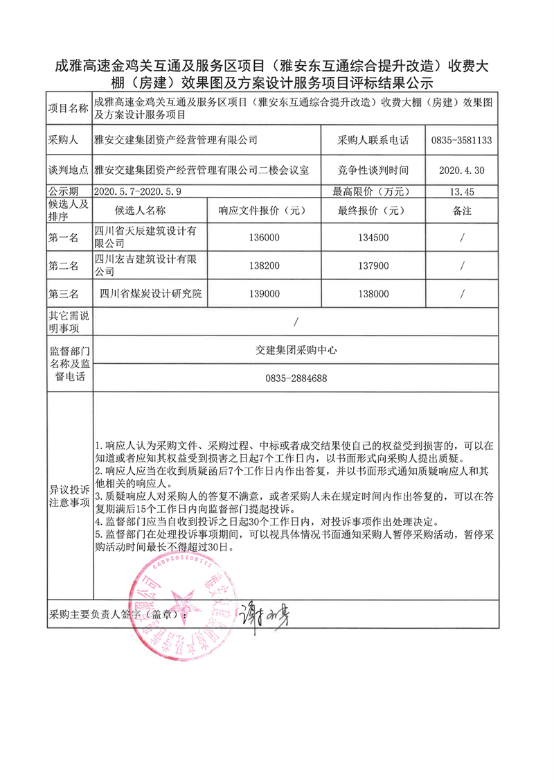 w66利来国际集团大兴交通开发有限公司雅安大兴南综合交通枢纽(TOD)项目临建及场地平整工程项目评标结果公示