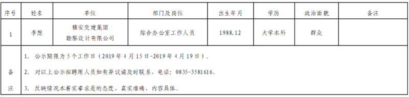 w66利来国际集团子公司拟聘用人员公示(勘察设计公司)
