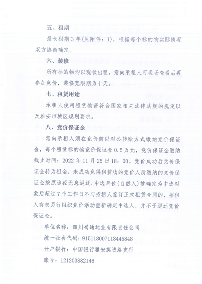 蜀通公司闲置资产招租公告
