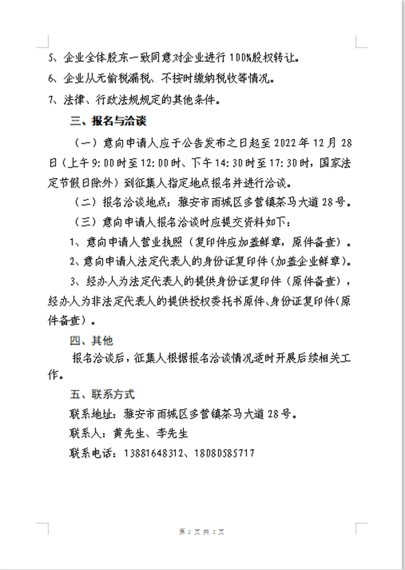 四川康藏路桥有限责任公司 股权收购事项征集公告