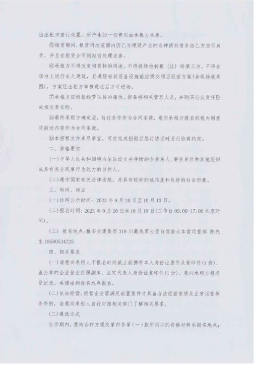 四川康藏路桥有限责任公司318·川藏线零公里自驾游大本营临时用地临时招租征集公告