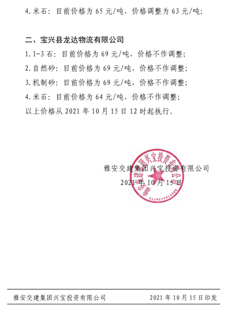 w66利来国际集团兴宝公司关于调整成品料销售价格的通知(2021.10.15)