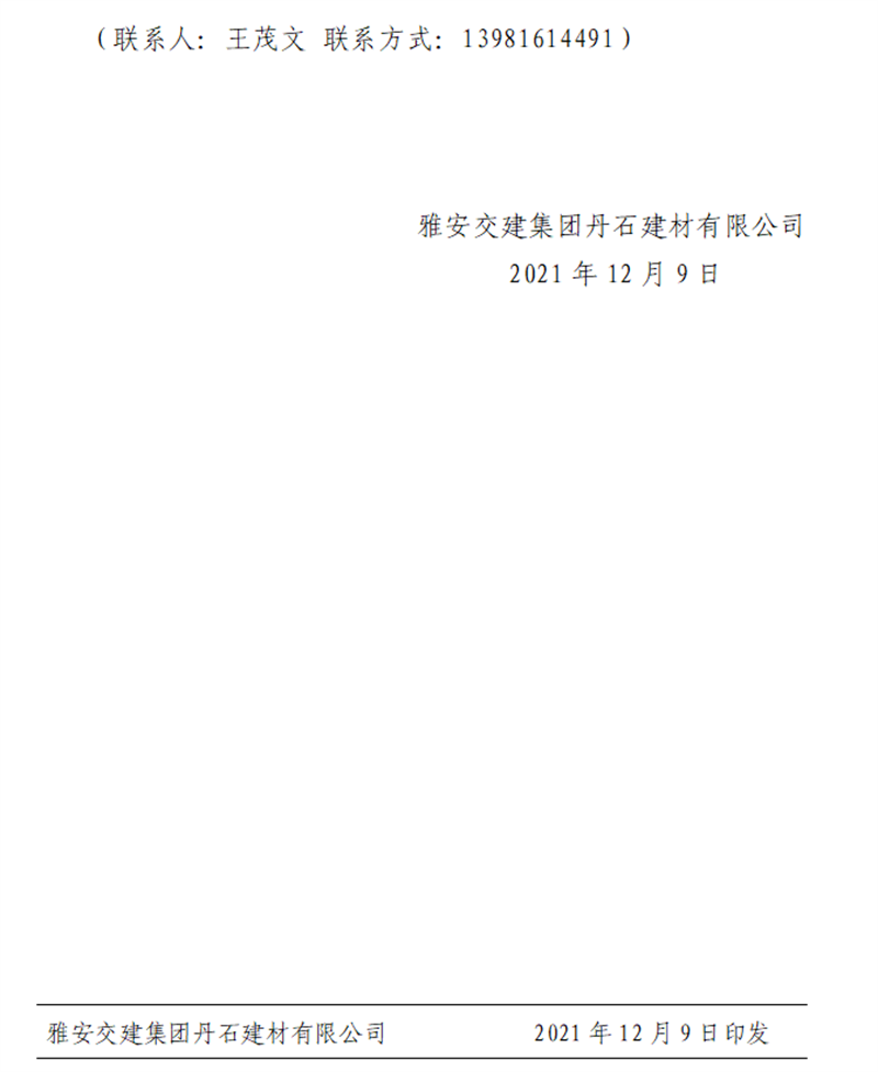 w66利来国际集团丹石公司关于调整砂石成品骨料销售价格的通知(2021.12.9)
